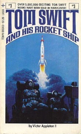 After 33 successful hardcover titles were published in the Tom Swift Jr. series by Grosset & Dunlap between 1954 and 1971, there were two paperback editions offered. The first group of four from 1974 were large digest-size paperbacks. New cover art was made but the original printing plates were used, complete with the Graham Kaye illustrations inside. Two of the books had new titles.
